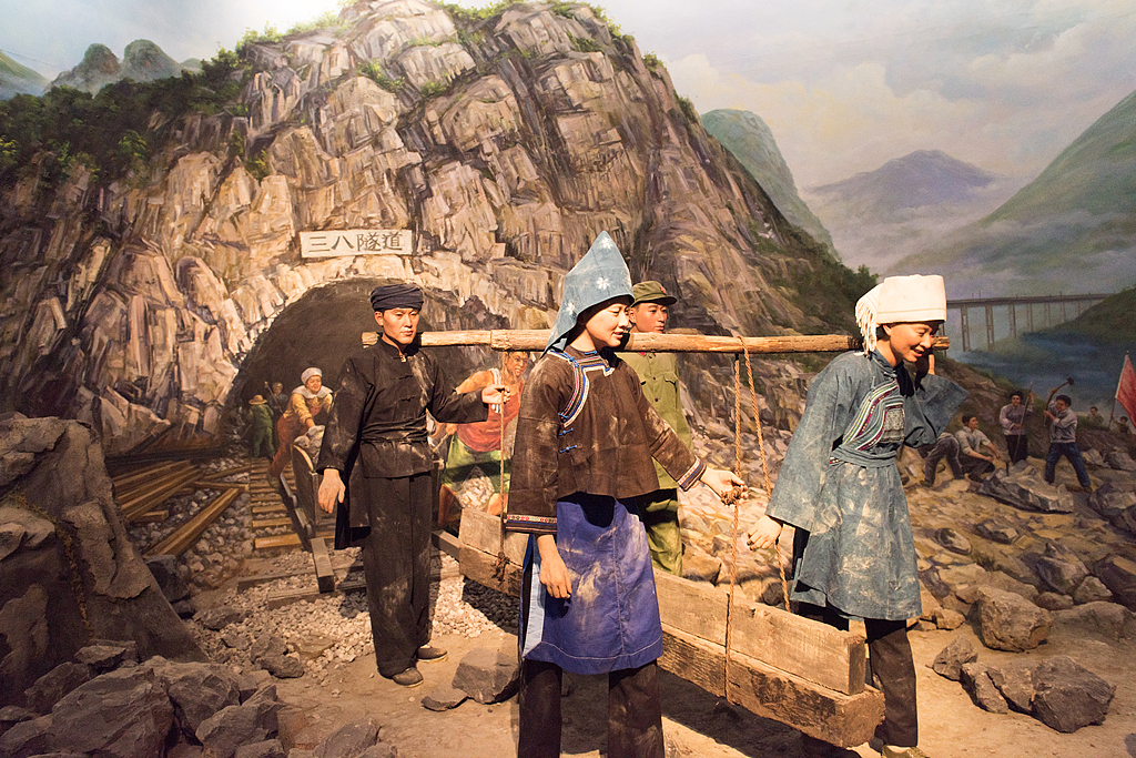 (都匀三线建设博物馆中,湘黔铁路、黔桂铁路的修建场景复原图画)