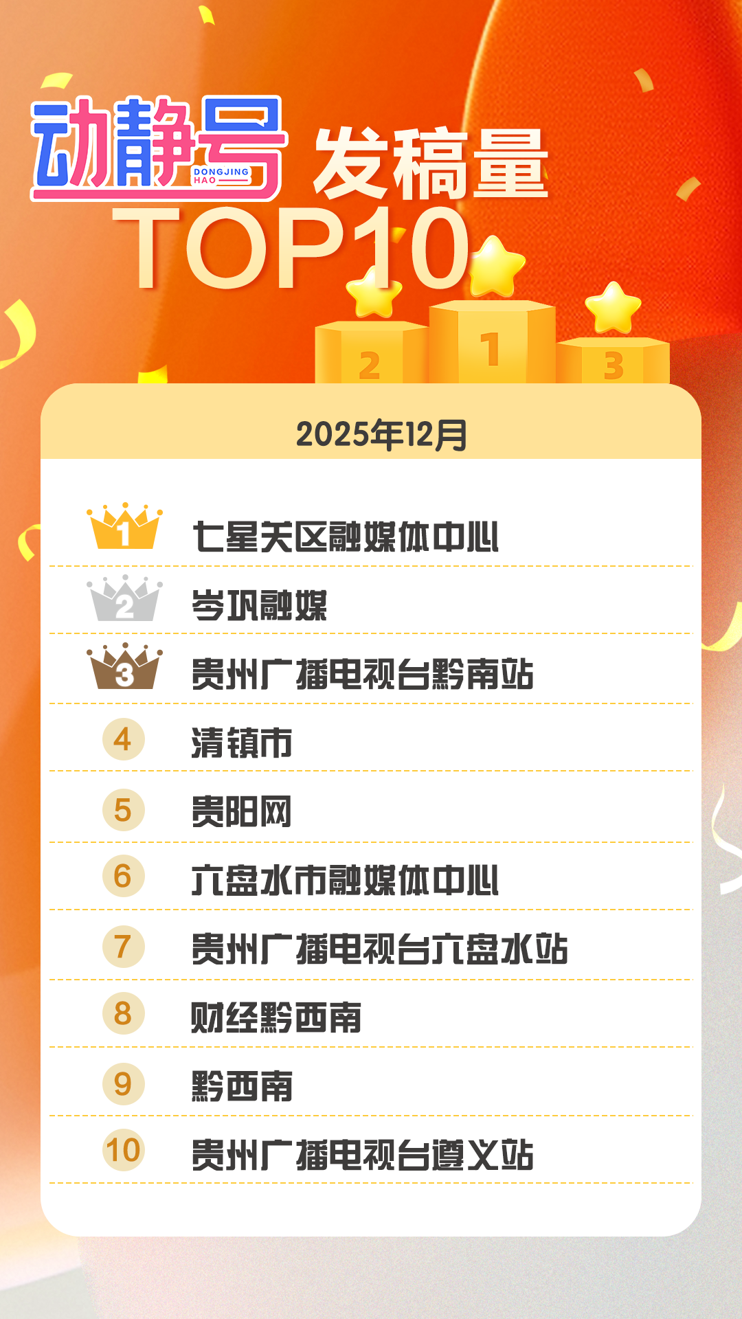 财经黔西南、贵州广播电视台黔南站、黔西南、贵州广播电视台遵义站、清镇市、贵州广播电视台六盘水站、岑巩融媒、七星关区融媒体中心同步发力,发稿量与阅读量双双跻身前列,以实绩共同勾勒出全域覆盖、高效传播的内容版图。