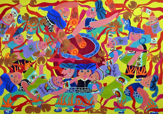 水城农民画是在传统民间艺术基础上产生和发展起来的新型造型艺术,由于展现的多是生产生活、民风民俗等场景,所以创作者都是老百姓。农民画自1983年在水城兴起以来,已经经过了两代人的传承,徐源就是第二代农民画家中的佼佼者。