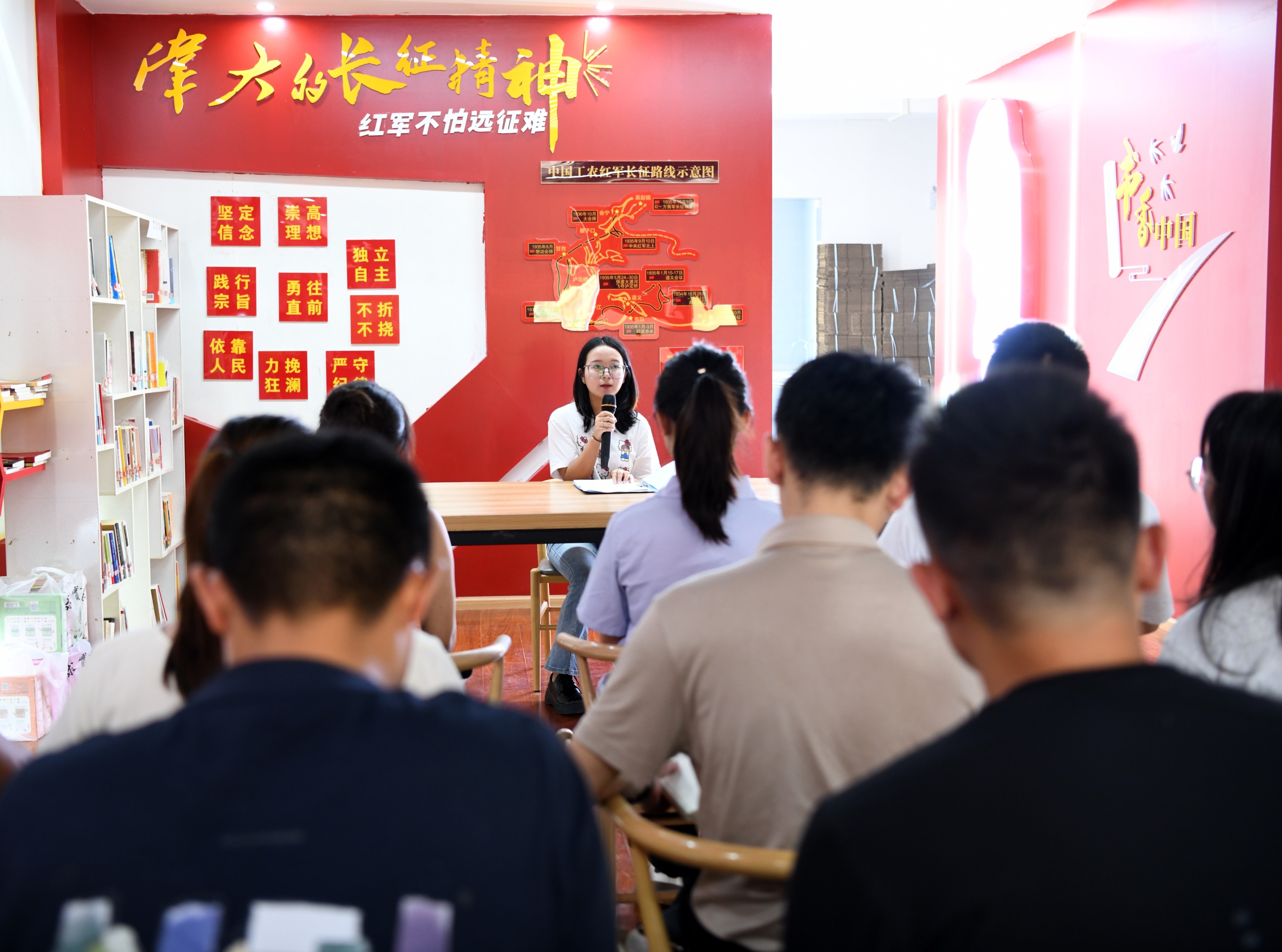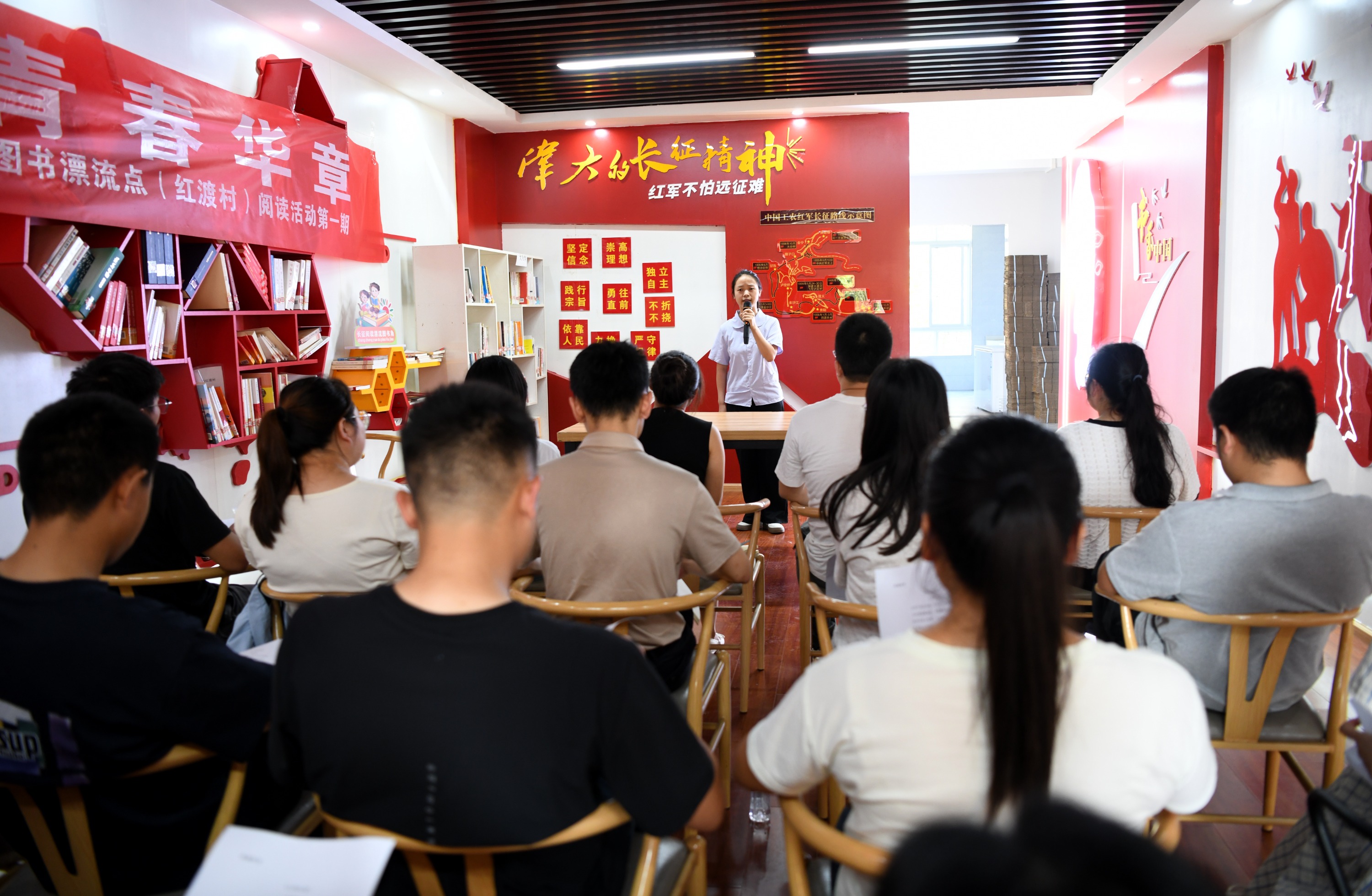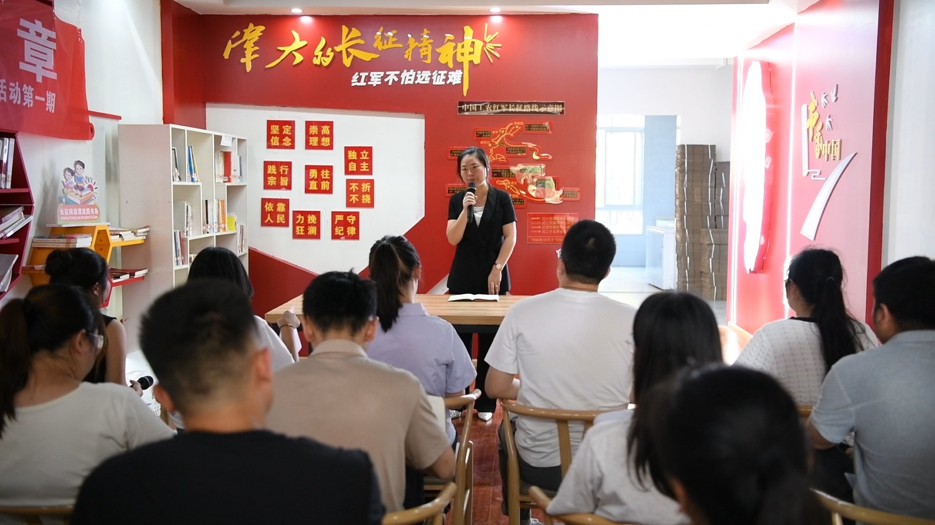 活动以《长征》节选朗诵开场,配合《延安典故》的革命故事解读,深刻阐释了共产党人的初心使命。青年干部通过《三斗破天险》等红渡村红色故事讲述,集体共读《七律·长征》等经典诗词环节,配合长征知识抢答和自由讨论,构建了沉浸式的红色文化体验场景,实现了长征精神与地域文化的有机融合,使红色基因在乡土叙事中焕发新生。
