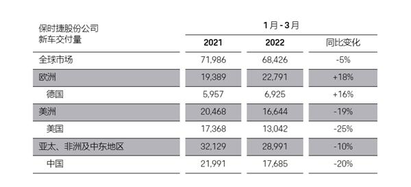 最新数据显示,2022年一季度,保时捷全球交付68426辆,其中在中国市场交付17685辆,虽然同比下降了20%,但仍稳居全球第一单一市场。
