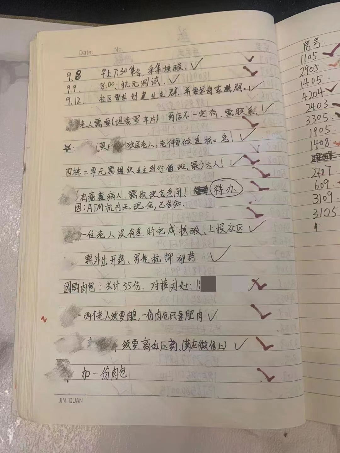 用爱和行动聚集微光,照亮如期而至的希望。楼长小刘每天都会在工作本上记录要做的工作,这一份份工作清单更像小刘与邻居们携手战“疫”的一篇篇故事。