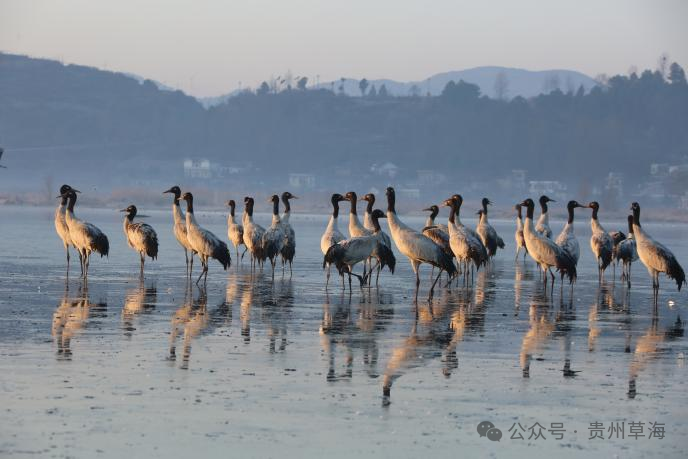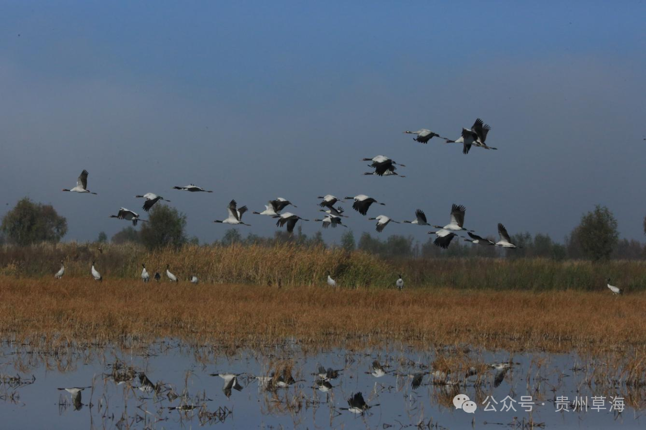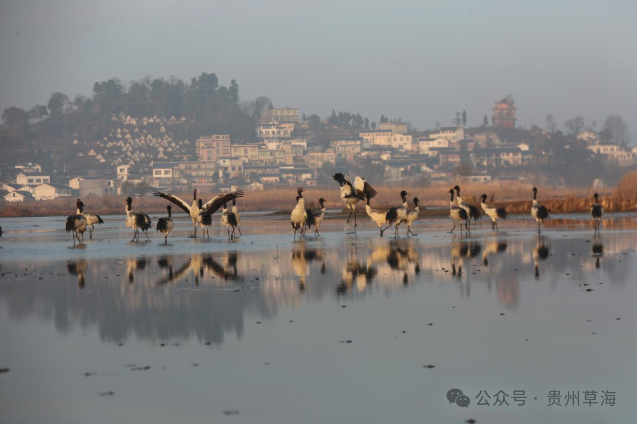 位于贵州省毕节市威宁县城南隅的草海国家级自然保护区,总面积120平方公里。被誉为“高原明珠”的草海不仅是贵州省最大的天然湖泊,更是众多候鸟迁徙的中转站,是我国特有的高原鹤类黑颈鹤的主要越冬地之一。每年秋冬季节,草海都会吸引包括国家一级保护动物黑颈鹤等249种、10余万只候鸟前来越冬。成群结伴的黑颈鹤从远方飞来,在这片湿地中翩翩起舞,成为一道独特的风景线。