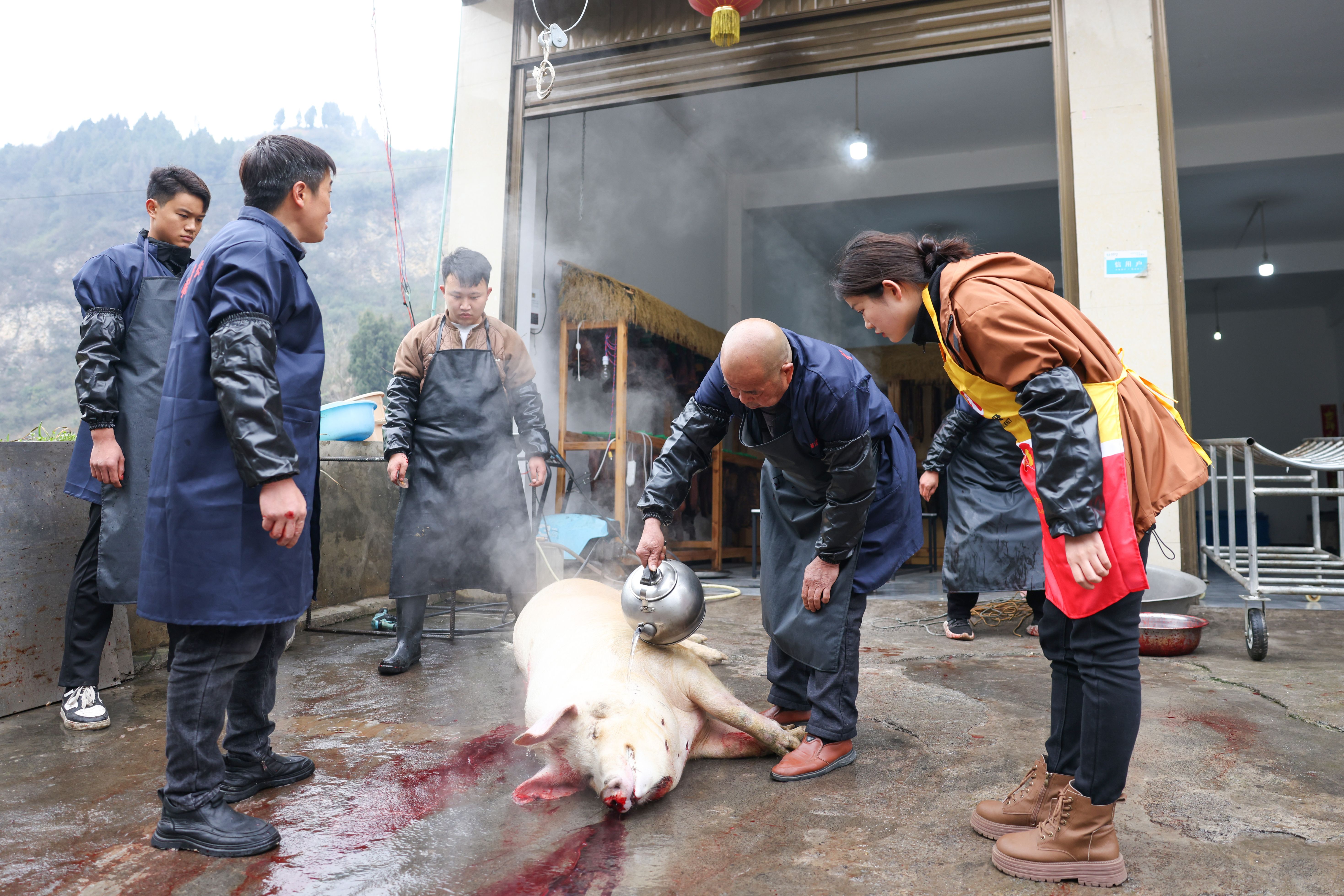 清晨,随着一声猪叫划破宁静,一年的重头戏开始了。
