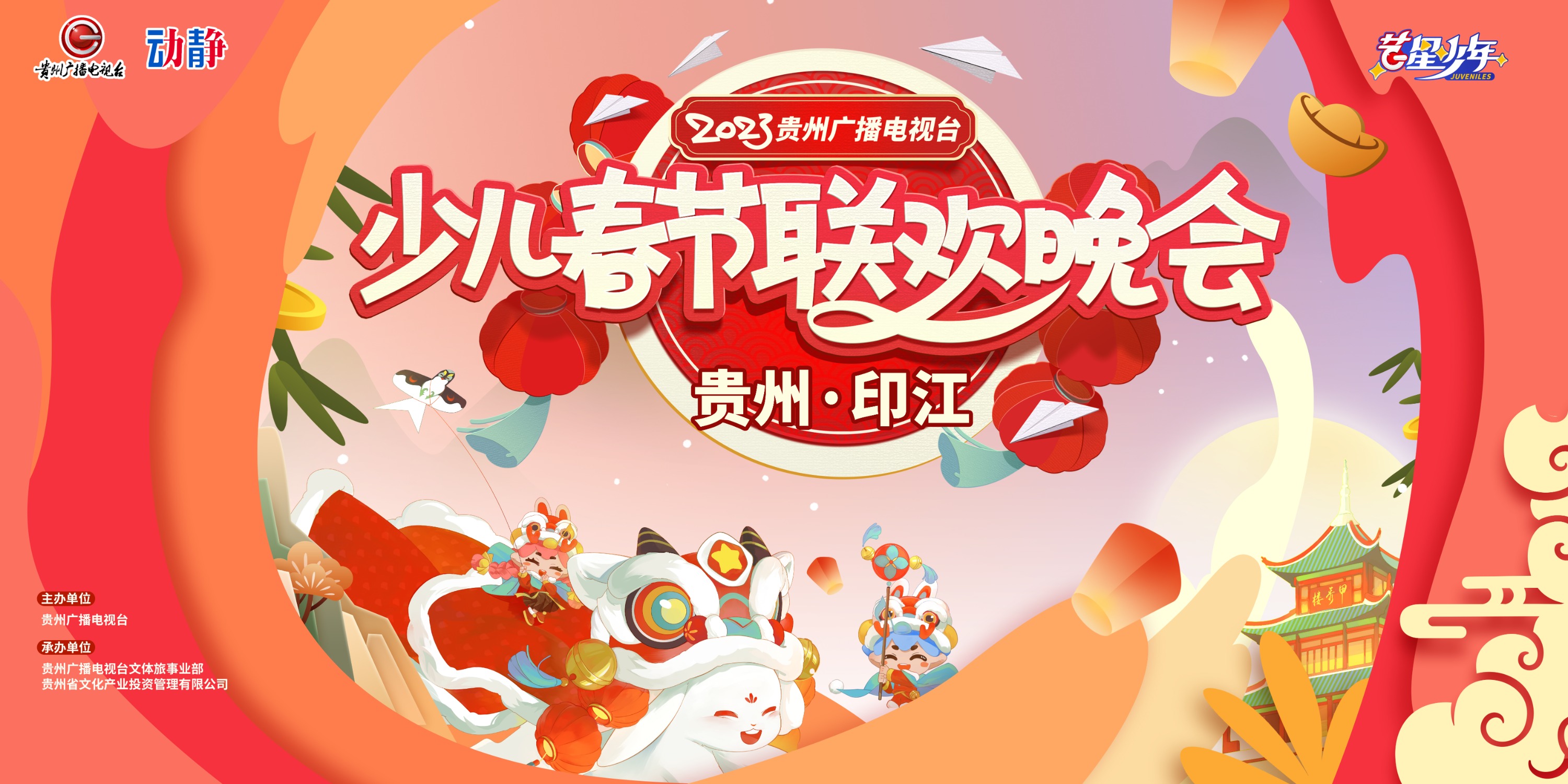 《2023年贵州广播电视台少儿春节联欢晚会》本次少儿春晚将通过节目展演的方式,为全省少年儿童搭建一个艺术呈现与交流的平台,以此丰富贵州少年儿童的文化艺术生活。艺星少年邀你一起点亮我们新春的电视大荧幕!“贵州广播电视台少儿春节联欢晚会”--印江分会场直播将于2023年1月14日9:30点正式开始。敬请期待!