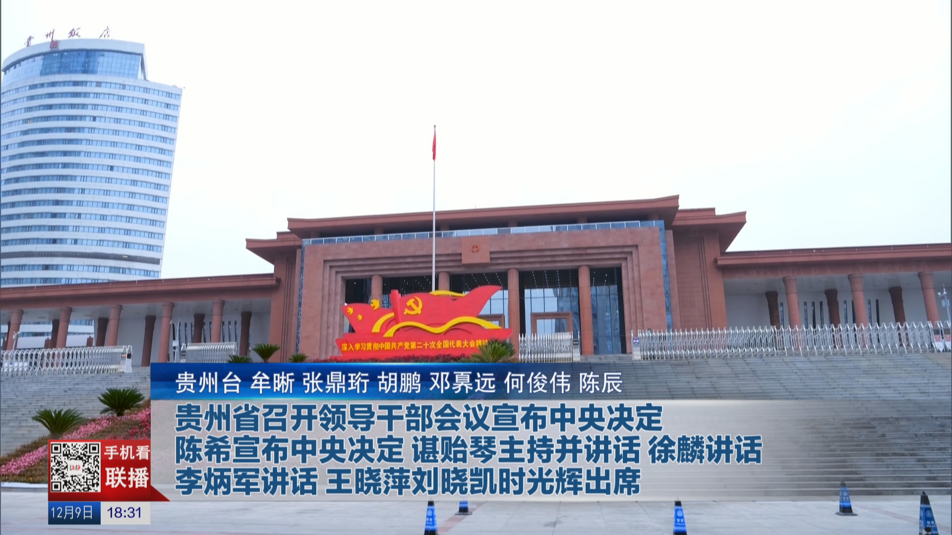 12月9日,贵州省召开全省领导干部会议。中央组织部部长陈希同志出席会议并宣布中央决定:谌贻琴同志不再担任贵州省委书记、常委、委员职务,另有任用;徐麟同志任贵州省委委员、常委、书记。谌贻琴主持会议并讲话。省委书记徐麟讲话,省委副书记、省长李炳军讲话。中央组织部副部长王晓萍、部务委员兼干部二局局长张光军,省政协主席刘晓凯,省委副书记、省委政法委书记时光辉出席会议。