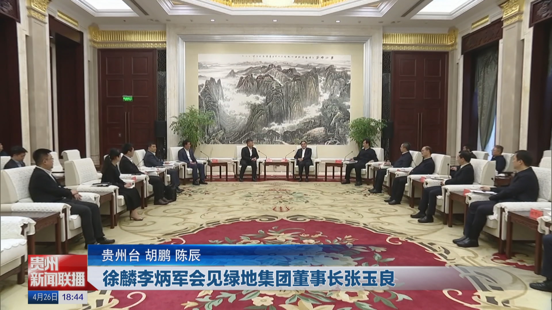 4月25日,省委书记、省人大常委会主任徐麟,省委副书记、省长李炳军在贵阳会见绿地集团董事长、总裁张玉良一行。省领导陈少波、杨同光参加。
