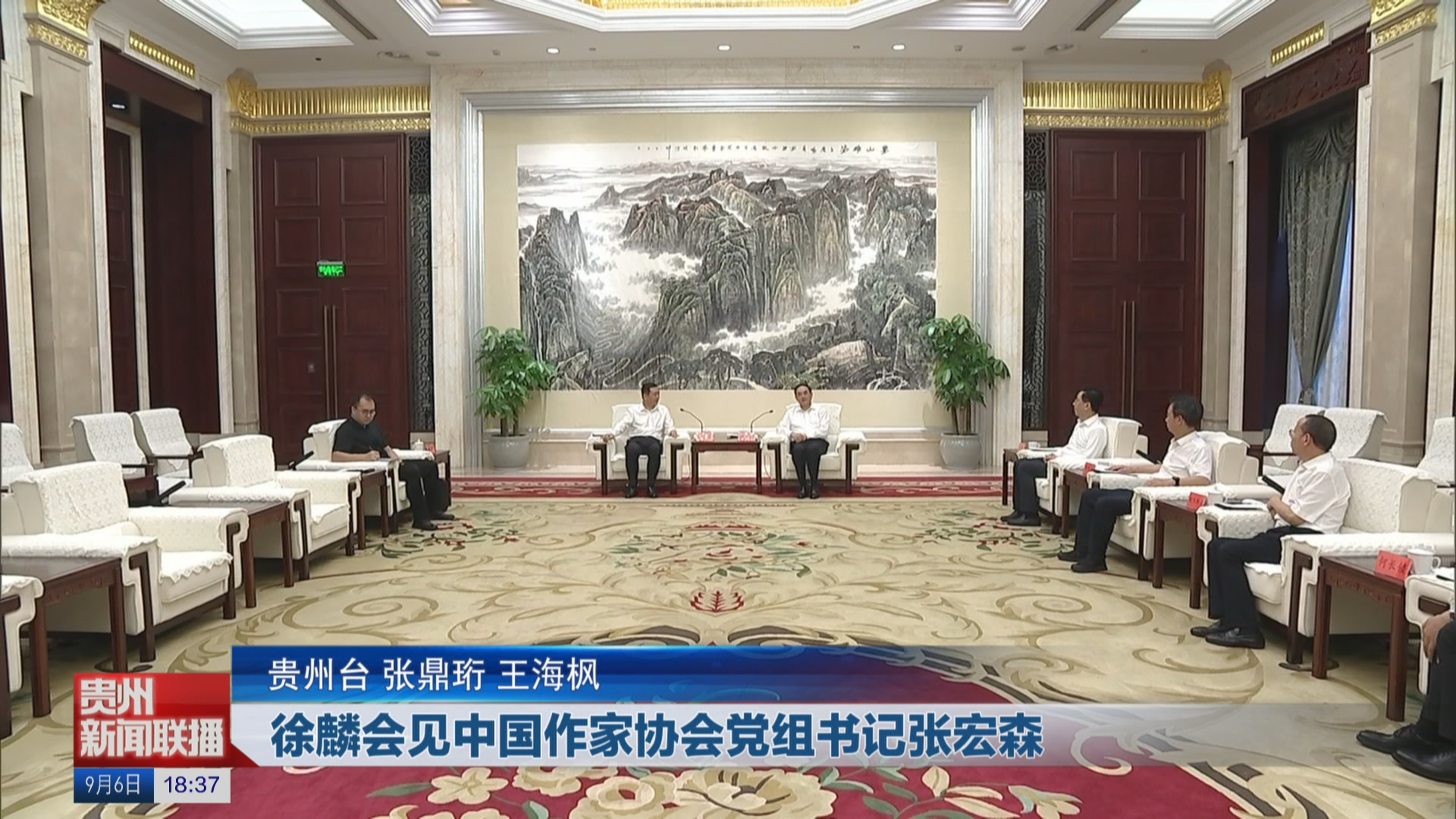 9月5日,省委书记、省人大常委会主任徐麟在贵阳会见中国作家协会党组书记、副主席、书记处书记张宏森一行。省委常委、省委宣传部部长卢雍政参加。