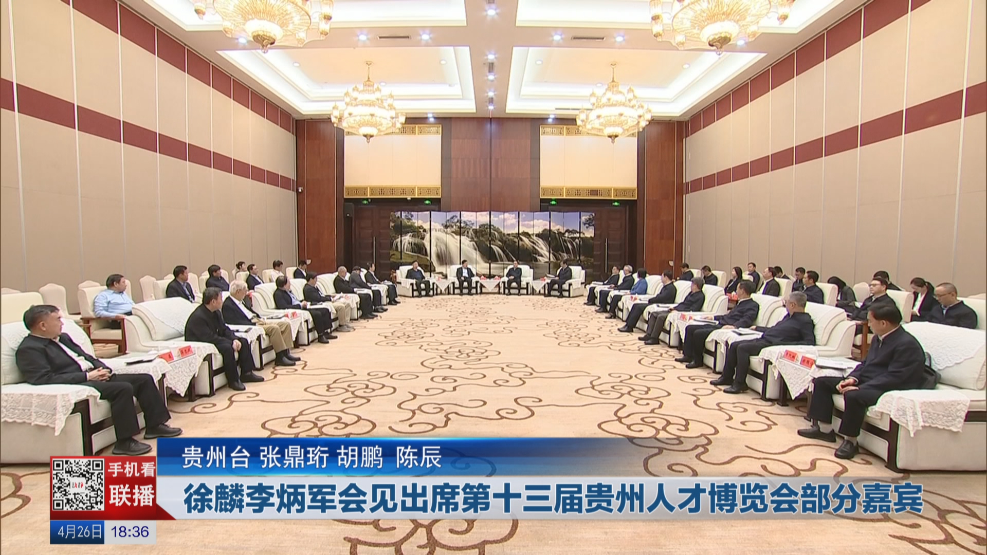 4月25日,省委书记、省人大常委会主任徐麟,省委副书记、省长李炳军在贵阳会见出席第十三届贵州人才博览会部分嘉宾。省委常委、省委组织部部长时玉宝主持,省领导蔡朝林、张敬平、罗强、孙诚谊参加。