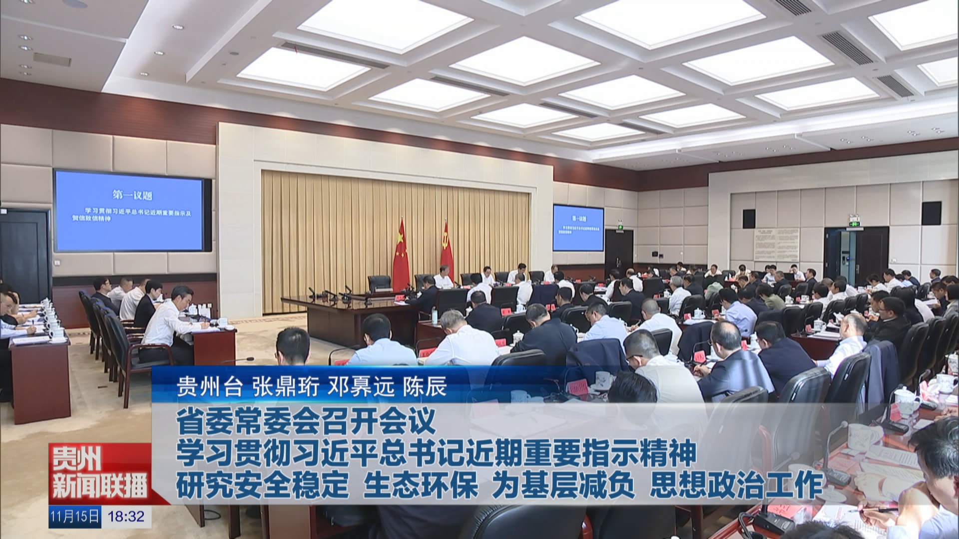 11月15日,省委常委会召开会议,学习贯彻习近平总书记近期重要指示精神,听取中央生态环境保护督察发现问题整改情况、整治形式主义为基层减负工作情况、全省思想政治工作情况汇报,研究部署相关工作。