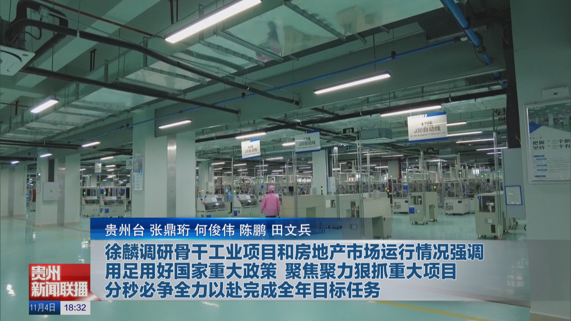 11月4日,省委书记、省人大常委会主任徐麟赴贵阳市调研骨干工业项目和房地产市场运行情况,强调要深入贯彻党的二十届三中全会精神和习近平总书记在9月26日中央政治局会议上的重要讲话精神,牢牢守好发展和生态两条底线,用足用好国家重大政策,聚焦聚力狠抓重大项目,抢抓机遇、乘势而上,分秒必争、全力以赴完成全年经济社会发展目标任务。省领导胡忠雄、郭锡文、罗强、杨同光参加。