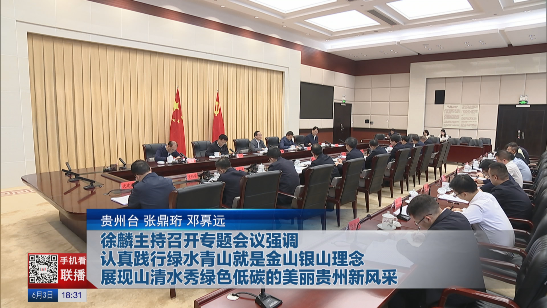 6月3日,省委书记徐麟主持召开专题会议,研究生态环境保护和生态文明建设工作。他强调,要深学细悟笃行习近平生态文明思想,深入贯彻习近平总书记在贵州考察时的重要讲话精神,认真践行绿水青山就是金山银山理念,展现山清水秀、绿色低碳的美丽贵州新风采。省委副书记马汉成,省领导李元平、郭锡文、杨同光参加。