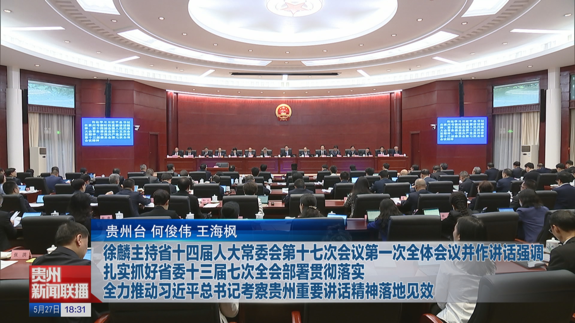 5月27日,省委书记、省人大常委会主任徐麟主持省十四届人大常委会第十七次会议第一次全体会议并讲话。