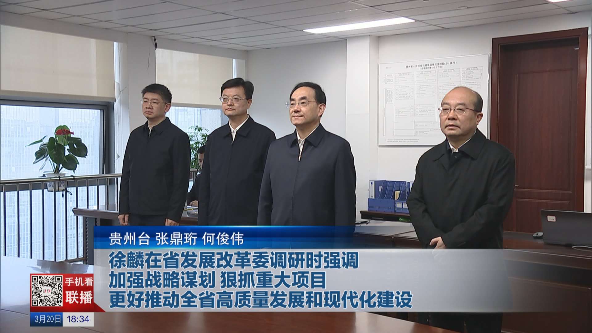 3月20日,省委书记、省人大常委会主任徐麟到省发展改革委调研。他强调,要深入学习贯彻习近平经济思想和习近平总书记视察贵州重要讲话精神,紧扣高质量发展这个新时代的硬道理和推进中国式现代化这个最大的政治,强化政治担当,加强战略谋划,狠抓重大项目,扩大有效投资,稳定经济运行,强化惠企利民,更好推动全省高质量发展和现代化建设。省委常委、常务副省长吴强参加。