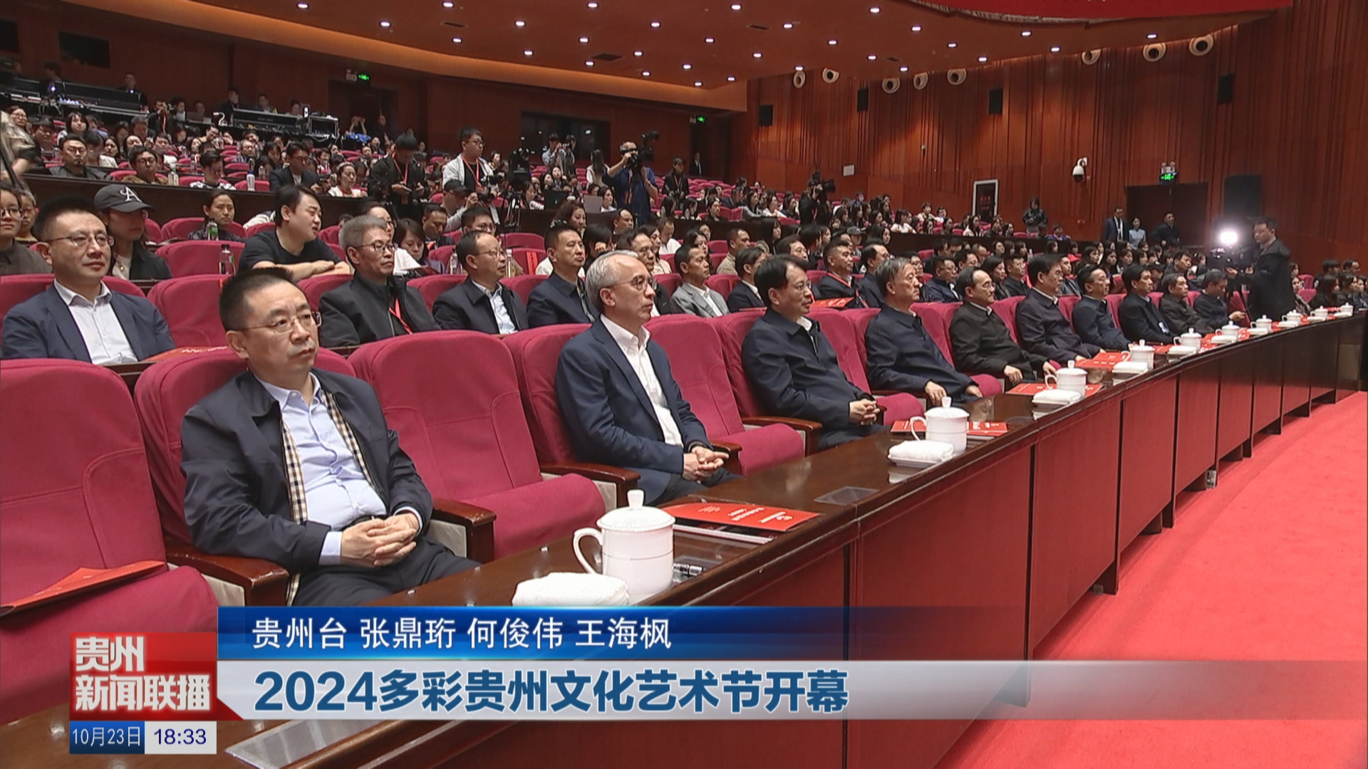 10月23日,以“多彩和鸣 大地乐章”为主题的2024多彩贵州文化艺术节在贵阳开幕。省委书记、省人大常委会主任徐麟,省委副书记、省长李炳军,省政协主席赵永清,省领导卢雍政、郭锡文、王忠、蔡朝林、陈坚出席开幕式并与各族各界群众观看演出。