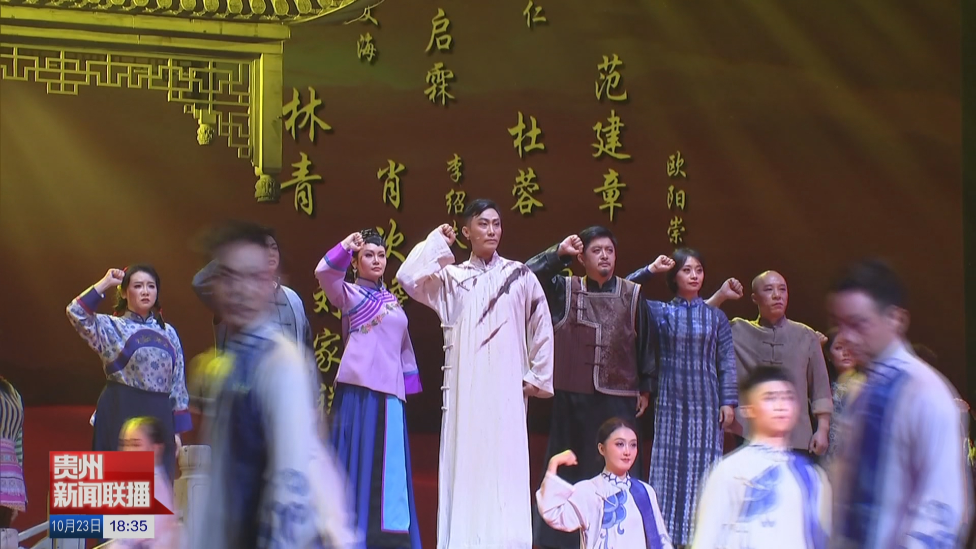 开幕式上,文艺工作者表演了精彩的节目。童声合唱《大山的小孩》质朴纯真,京剧《碧海丹心戚继光》气势磅礴,舞剧《天蝉地傩》将傩戏、侗族大歌与现代舞等元素有机结合,充分展示了贵州文艺创作的丰硕成果和文艺工作者的精神风貌。歌曲《紧紧跟着你》欢快热烈,抒发了贵州儿女牢记嘱托、感恩奋进,为谱写中国式现代化贵州篇章而不懈奋斗的坚定决心。大型交响黔剧《无字丰碑》以中共贵州省工委第一任书记林青为创作原型,生动讲述了战斗在隐秘战线上的贵州共产党人为革命事业英勇献身的故事,致敬革命先烈,赓续红色血脉,汲取奋进力量。演出赢得现场观众阵阵掌声。